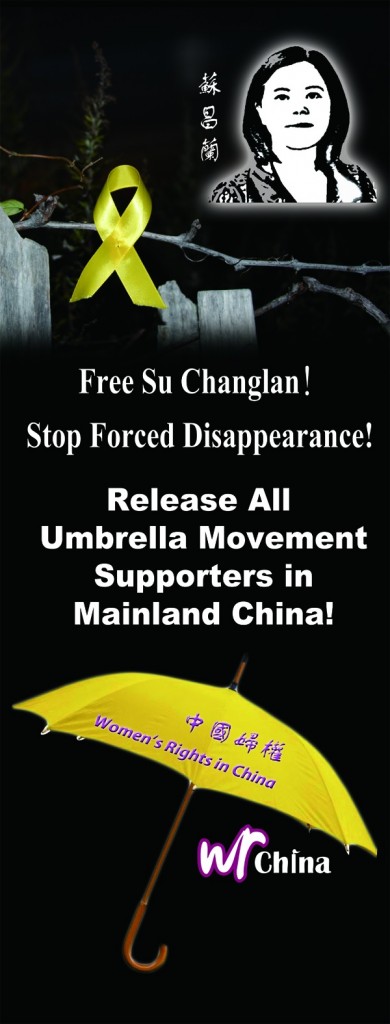 Su Changlan was accused of incitement to subvert state power and arrested three months and 18 days ago. Then on February 14, 2015, Valentine’s Day, her husband Chen Dequan and her older brother were detained on the same day by the police in Foshan City’s Chancheng District on charges of criminal provocation. According to Mr. Liu’s understanding of the situation, on February 12, because the Foshan Public Security Bureau’s national security detachment refused to see him and would not respond to petitions, Su Changlan’s older brother Su Shangwei stood beside the Foshan Public Security Bureau’s sign holding a piece of paper with “Su Changlan is innocent! Expressing my hope” and “Send Su Changlan home! Conscience is nonviolent!” and took two photographs.