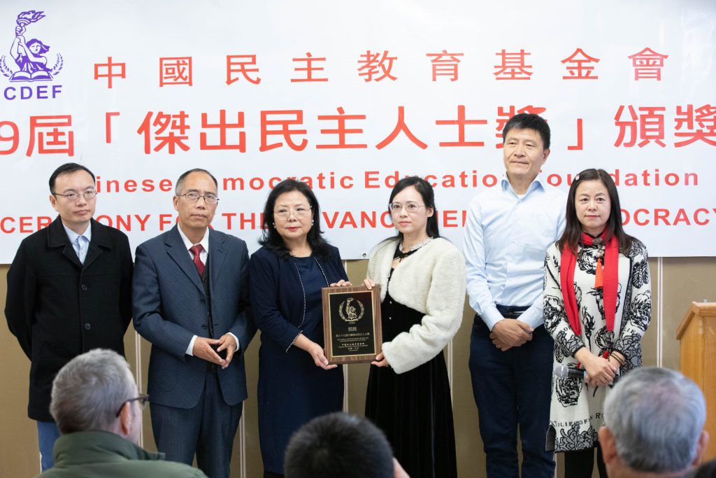 Finally, I am deeply honored to accept this distinction on behalf of Ms. Zhang Zhan today. Once again, I thank the Board of Directors and all colleagues of the Democratic Education Foundation for honoring her. I am also proud of and pay my highest respects to Ms. He Guilan (Gwyneth Ho), who is currently in a Hong Kong prison, and Mr. Ming Juzheng, who has long spared no effort in promoting the ideals of democracy and freedom. Thank you all!