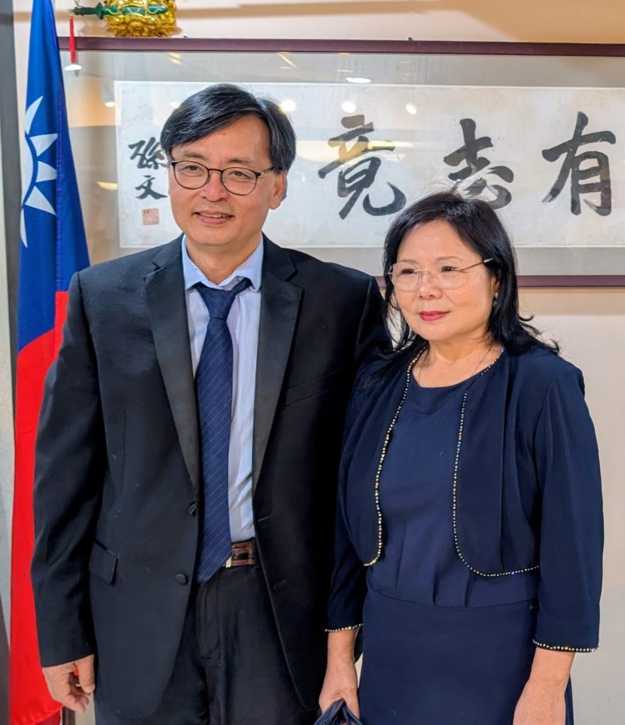 Zhang Jing poses for a photo with Feng Congde, president of the China National Democratic Foundation, at the award ceremony held at the Father of the Democracy Memorial Hall. (Photo provided by the Women’s Committee of the Independent Chinese PEN Center)